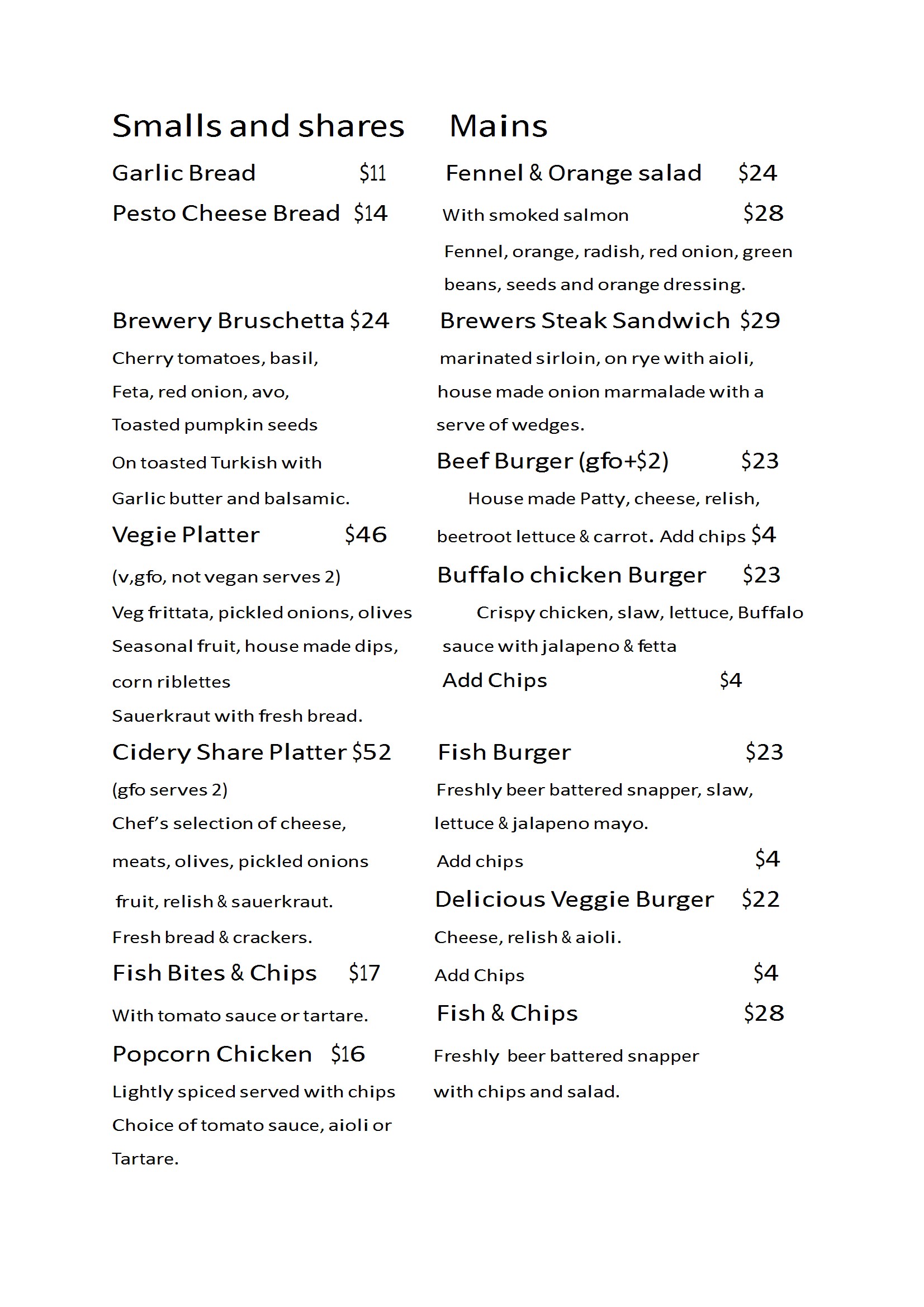 (vo) Vegan Option | (gfo) Gluten Free Option | (gf) Gluten Free