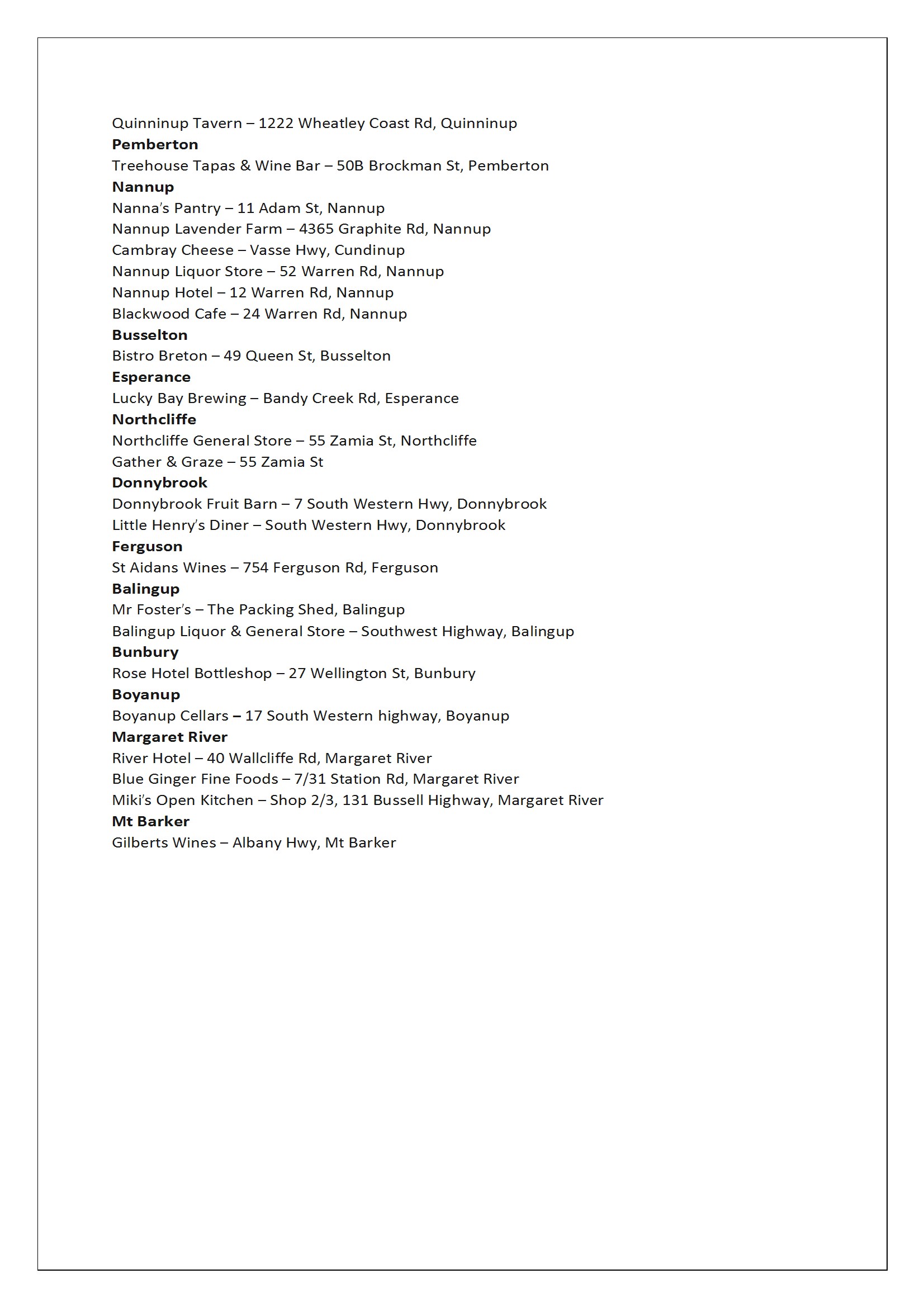 You can buy our boutique ciders at the following retail outlets. If you cannot see a stockist close to you on this list, why not ask your local bottleshop to contact Louise at The Cidery on 08 9761 2204 to place an order?!